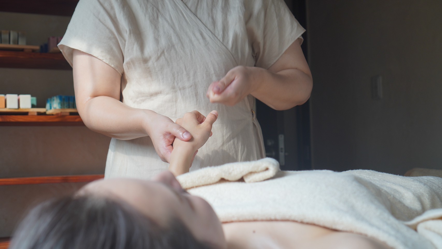 指先などの点でマッサージする指圧と違い、手のひらや腕全体の面を使ってマッサージをする独特のスタイルがあります。体全体を使い、緩急のあるロミロミの動きは、筋肉のコリをほぐし、リンパの流れを改善します。ハワイ発祥ということもあり「風や波の動きに合わせたリズミカルな動き」と言われたりもします。